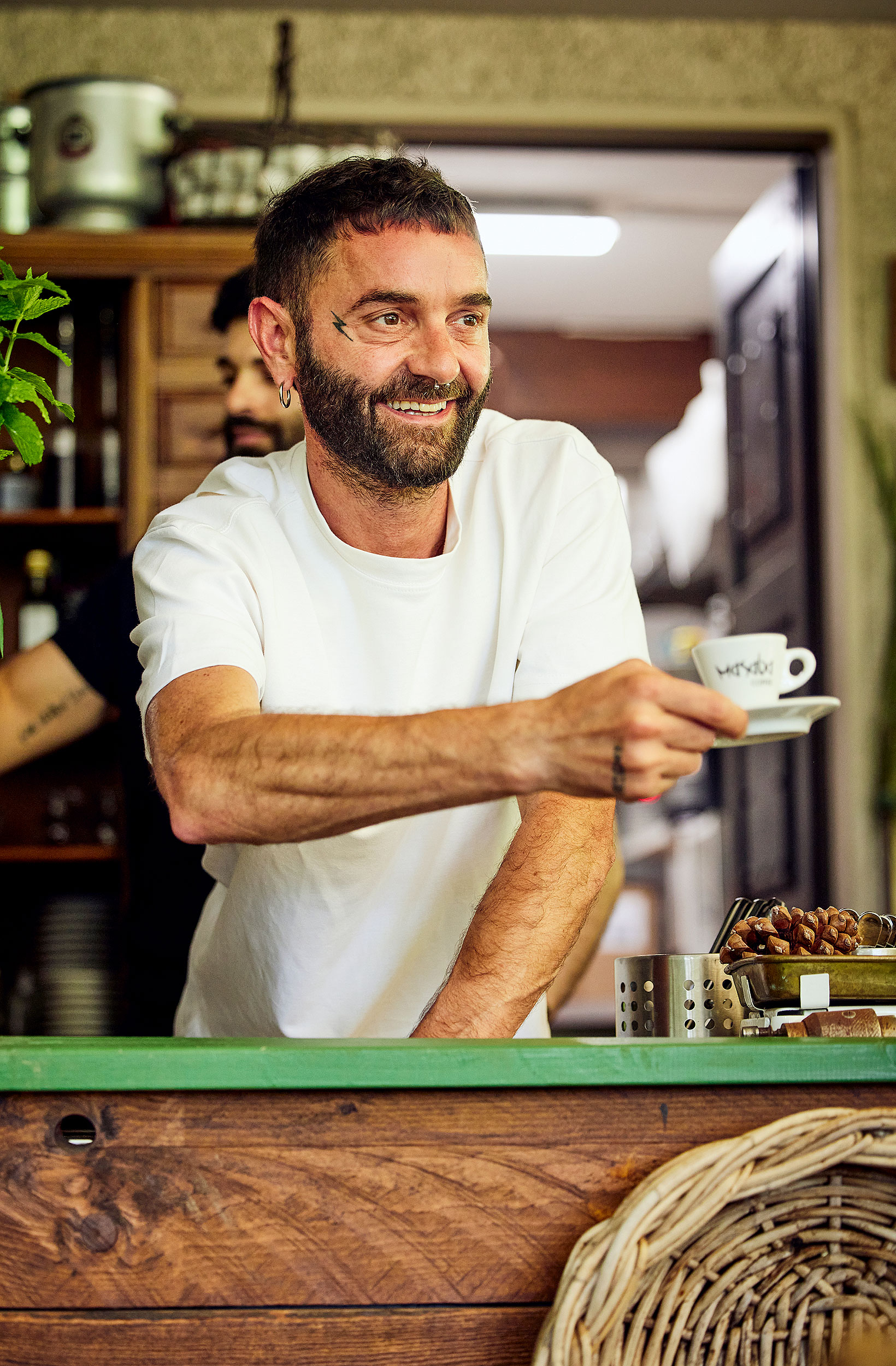 beim Espresso mit Francesco Melchiorre im Grott dal Fuin.