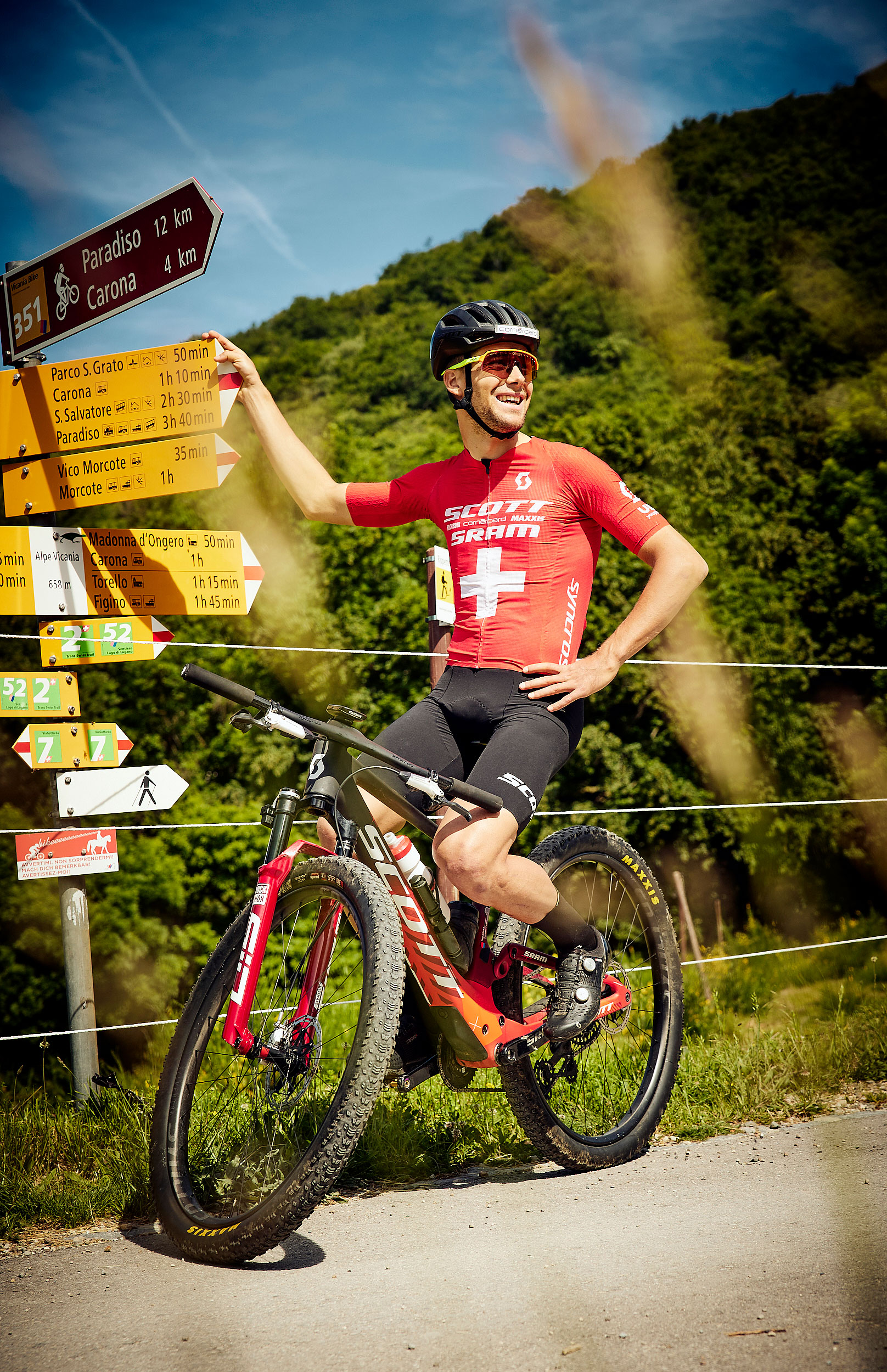 Meister im Cross-Country Filippo Colombo, beim goldensten Sonnenuntergang
